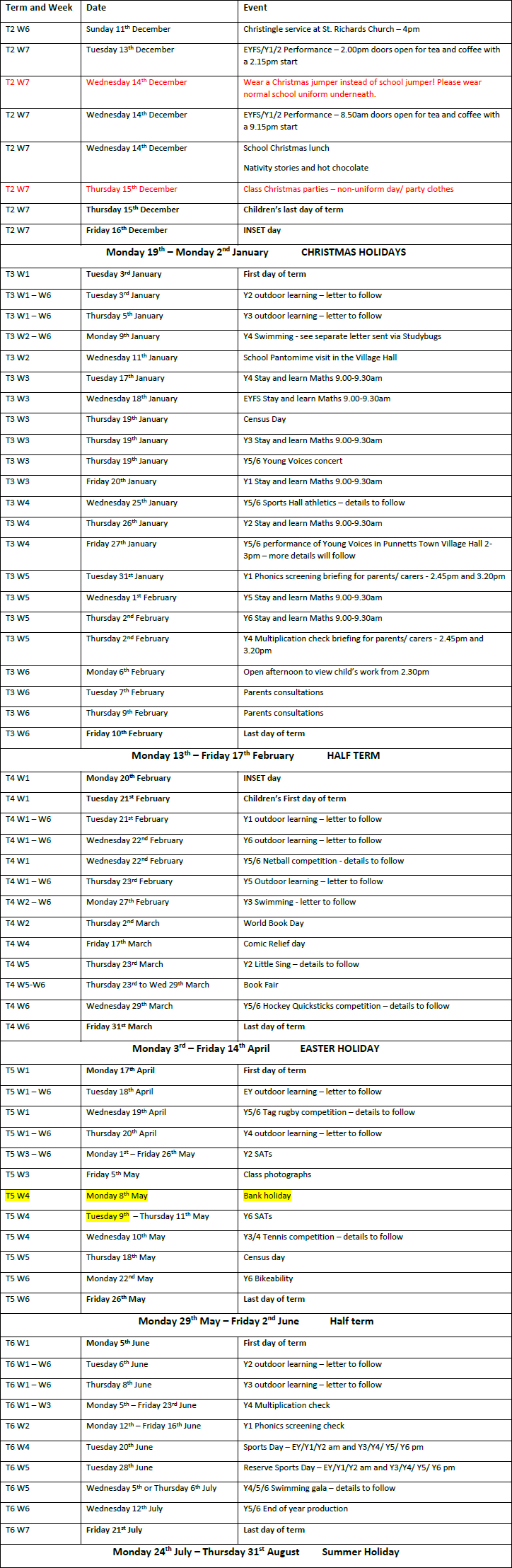 Term Dates