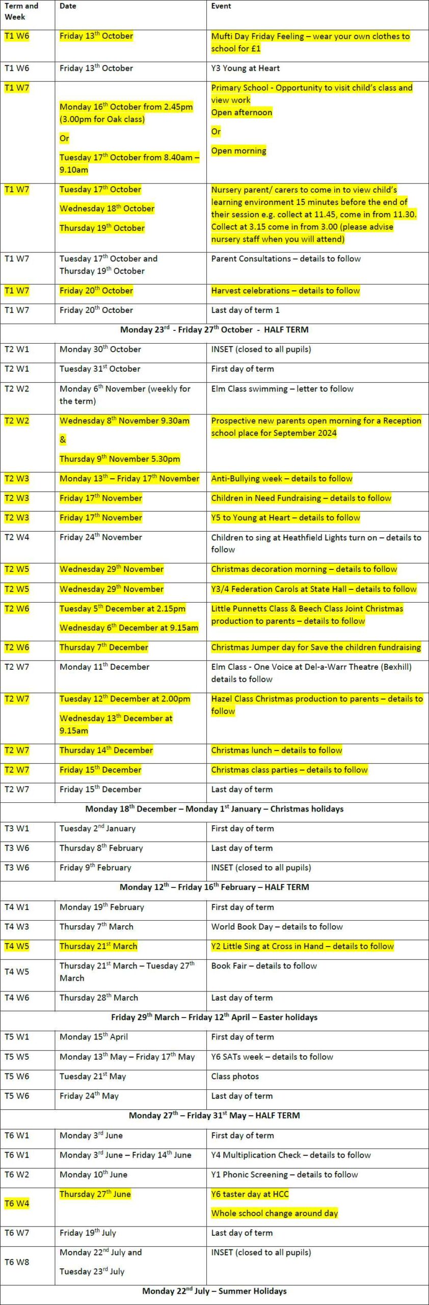 Term Dates