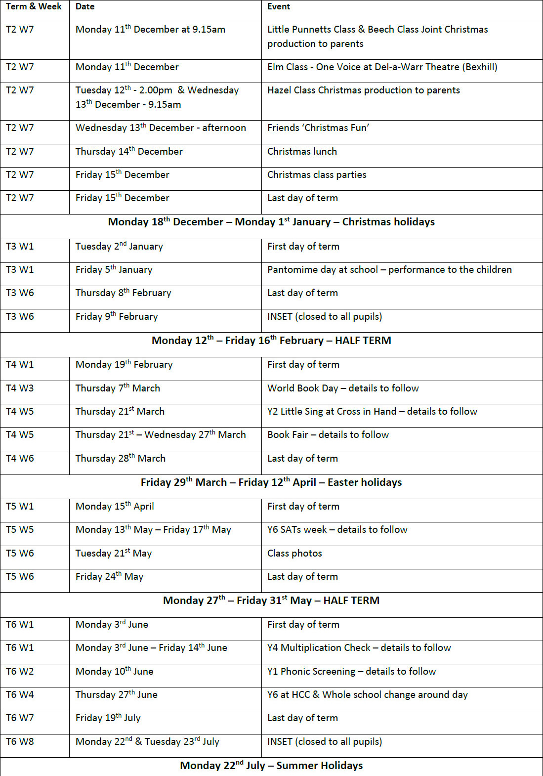 Term Dates
